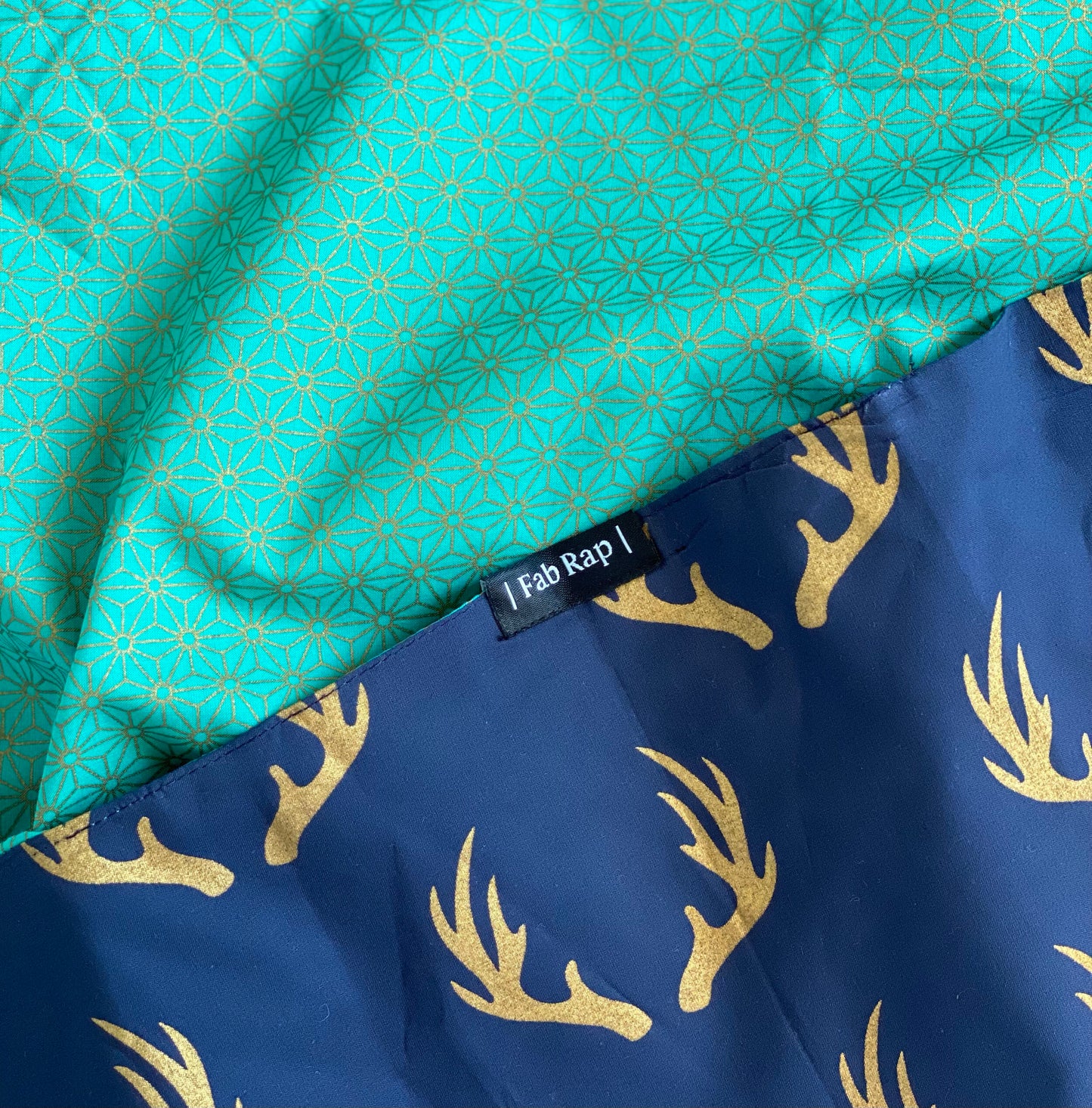 Der Reichtum von Jade mit goldenen Akzenten kombiniert mit dem tiefen Mitternachtsblau unseres „Midnight Reindeer“-Designs macht diesen FabRap zu einem einzigartigen, zeitlosen Weihnachtsdesign. Da die beiden Seiten des Stoffes unterschiedlich bedruckt sind, kann der FabRap nicht nur zu Weihnachten, sondern zu jeder beliebigen Jahreszeit mit seiner „Jade“-Seite verschenkt werden. All unsere FabRaps sind in einem modernen Umschlag aus Recyclingpapier verpackt, in dem sie bis zum nächsten Gebrauch sicher aufbewahrt werden können. Mit jeder Geschenkverpackung erhältst Du eine praktische Notizkarte, mit der Du den Empfänger*innen mitteilen kannst, ob sie die Geschenkverpackung behalten oder nach dem Auspacken zum Wiederverwenden zurückgeben sollen.