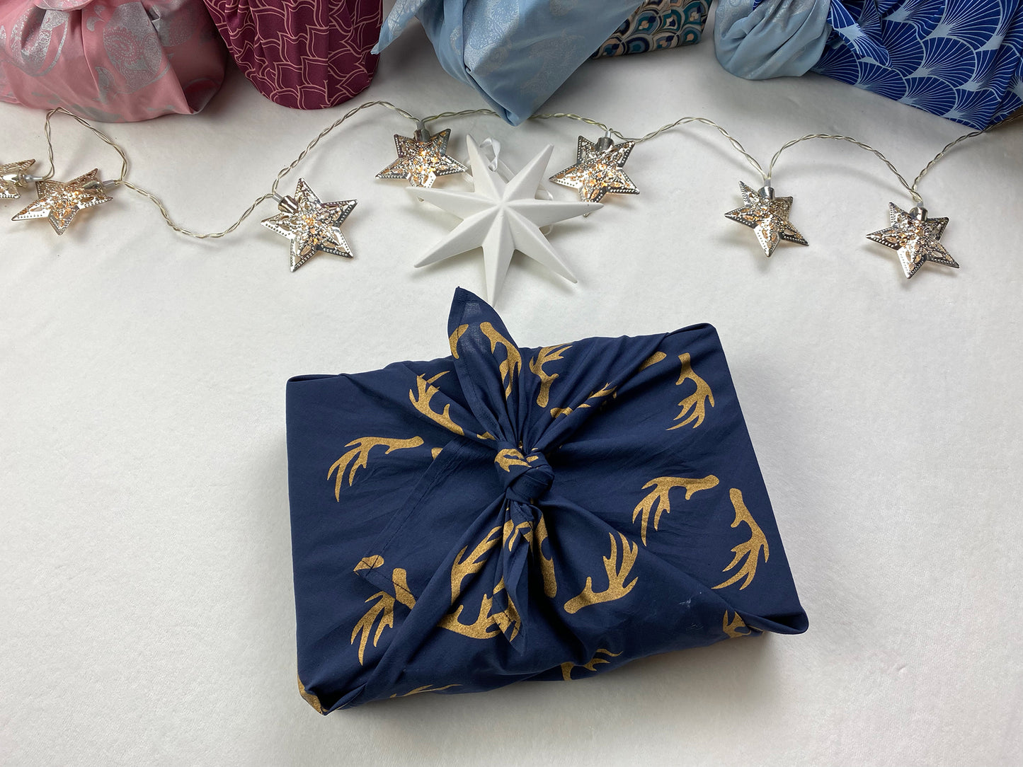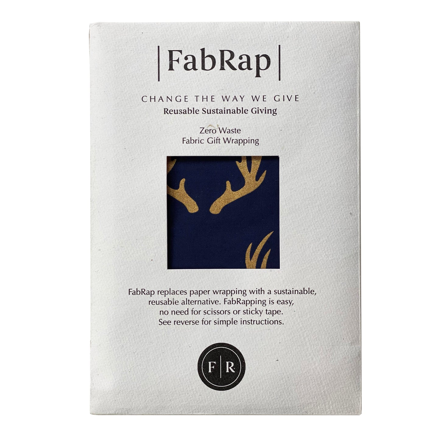 Dieser Rentiergeweih-Druck auf tiefem Mitternachtsblau ist ein schöner und eleganter Begleiter, der jedes Geschenk einfach unvergesslich macht. All unsere FabRaps sind in einem modernen Umschlag aus Recyclingpapier verpackt, in dem sie bis zum nächsten Gebrauch sicher aufbewahrt werden können. Mit jeder Geschenkverpackung erhältst Du eine praktische Notizkarte, mit der Du den Empfänger*innen mitteilen kannst, ob sie die Geschenkverpackung behalten oder nach dem Auspacken zum Wiederverwenden zurückgeben sollen.