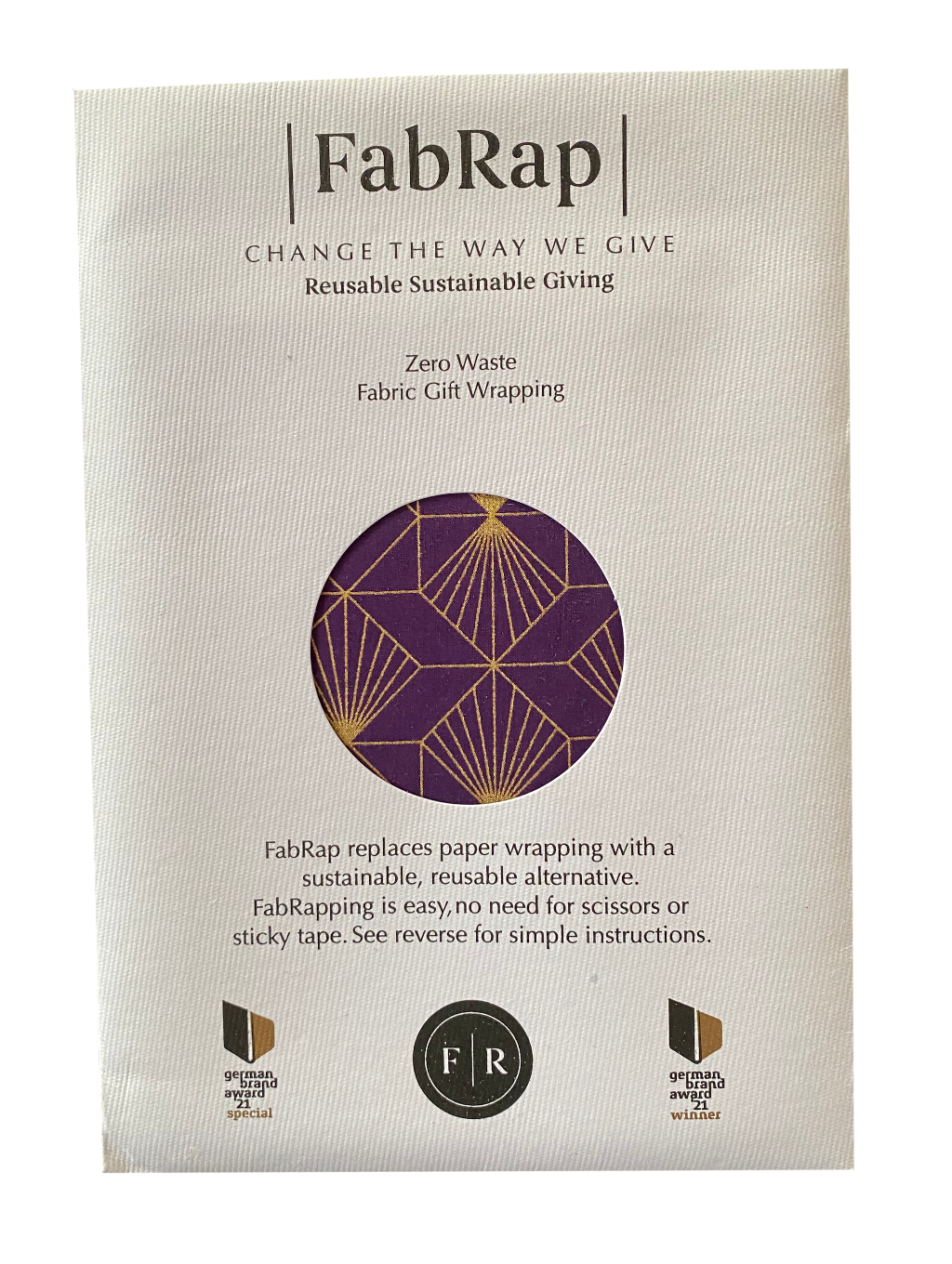Dieser elegante FabRap mit 1920er-Design ist von Art Deco inspiriert. Der reiche, pflaumenfarbige Hintergrund mit Goldakzenten wird den/die Empfänger*in garantiert beeindrucken und Dein Geschenk noch einzigartiger machen. Dieser Geschenkstoff ist perfekt für jeden Anlass – Geburtstage, Einweihungsfeiern oder auch Weihnachten. All unsere FabRaps sind in einem modernen Umschlag aus Recyclingpapier verpackt, in dem sie bis zum nächsten Gebrauch sicher aufbewahrt werden können. Mit jeder Geschenkverpackung erhältst Du eine praktische Notizkarte, mit der Du den Empfänger*innen mitteilen kannst, ob sie die Geschenkverpackung behalten oder nach dem Auspacken zum Wiederverwenden zurückgeben sollen.