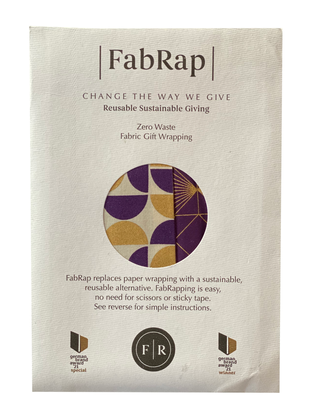 Beautifully matched and versatile for any occasion. All our FabRaps are packaged in a beautifully illustrated recycled paper envelope to help store your FabRap safely when not in use. Your purchase also includes handy note cards which help communicate to your recipient whether or not they should keep or give back the FabRap™ reusable gift wrap once the gift has been opened.