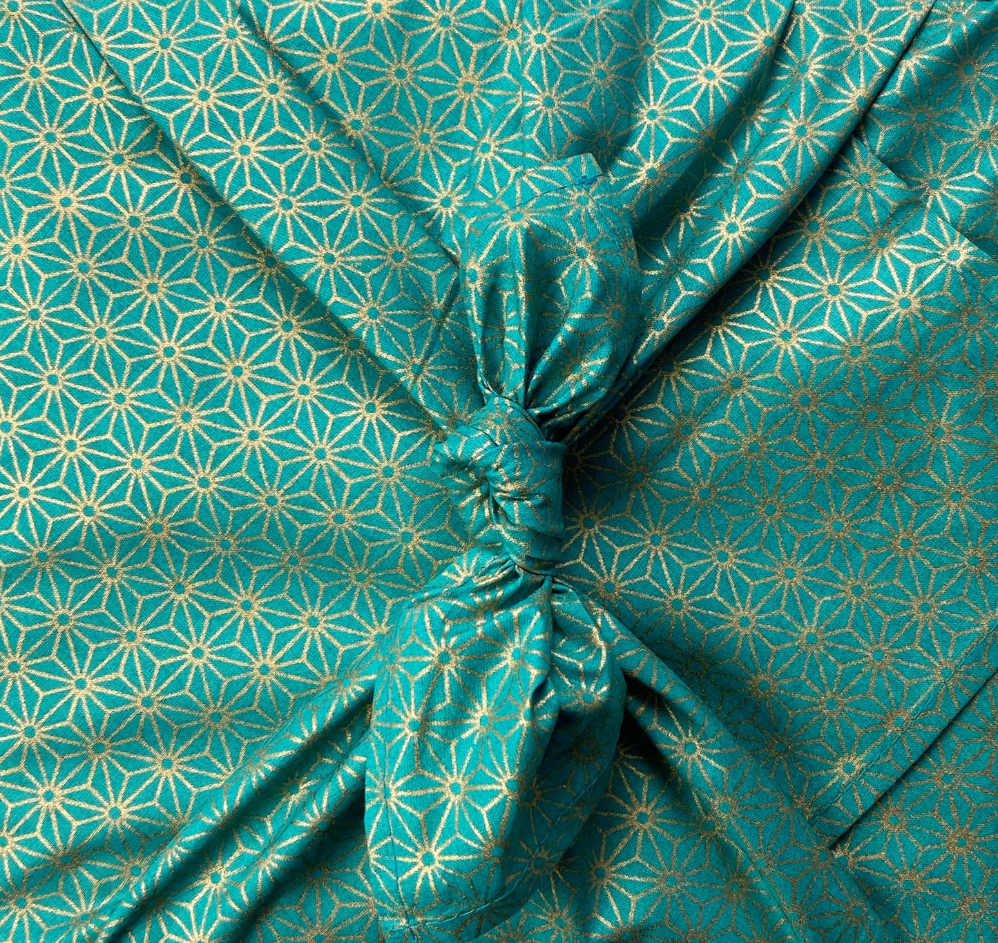 Furoshiki Gift Wrap Jade & Gold Asanoha Reusable Gift Wrap