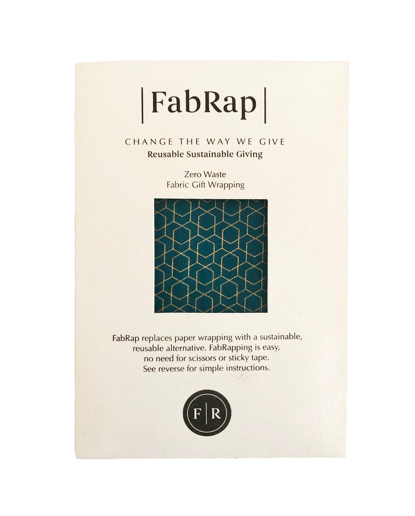 A FabRap with a delicate gold lattice print and rich deep ocean background. Another versatile and easily reusable FabRap destined to delight for years to come. All our FabRaps are packaged in a beautifully illustrated recycled paper envelope to help store your FabRap safely when not in use. Your purchase also includes handy note cards which help communicate to your recipient whether or not they should keep or give back the FabRap™ reusable gift wrap once the gift has been opened.
