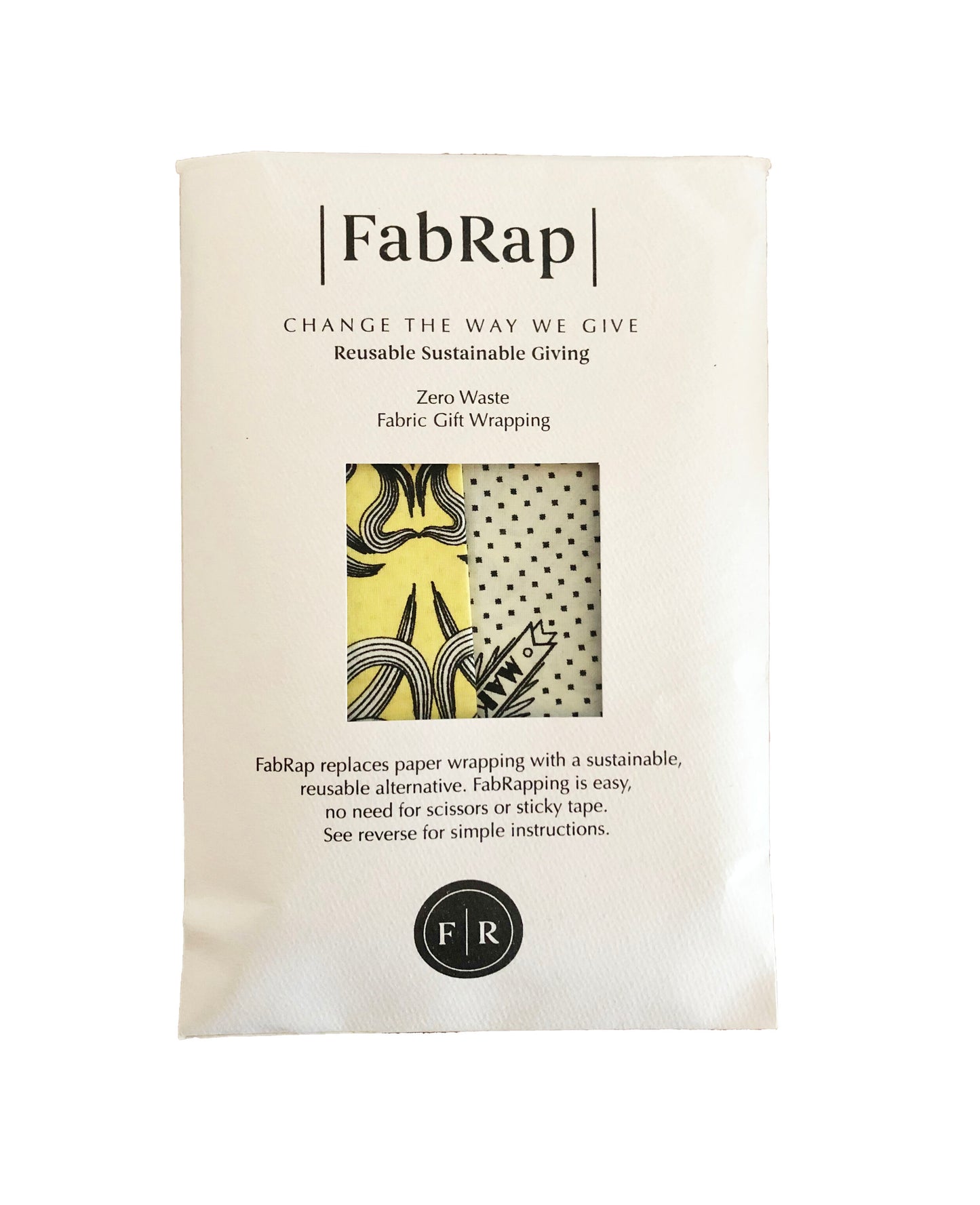 All FabRaps come packaged in a recycled paper envelope to help keep them safe when not in use. Your purchase also includes handy note cards which help communicate to your recipient whether or not they should keep or give back the FabRap™ reusable gift wrap once the gift has been opened.