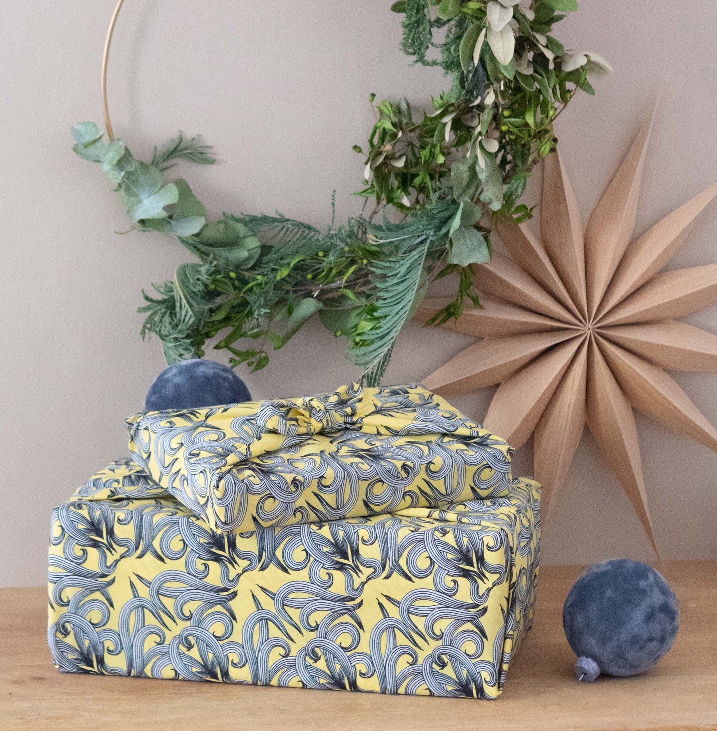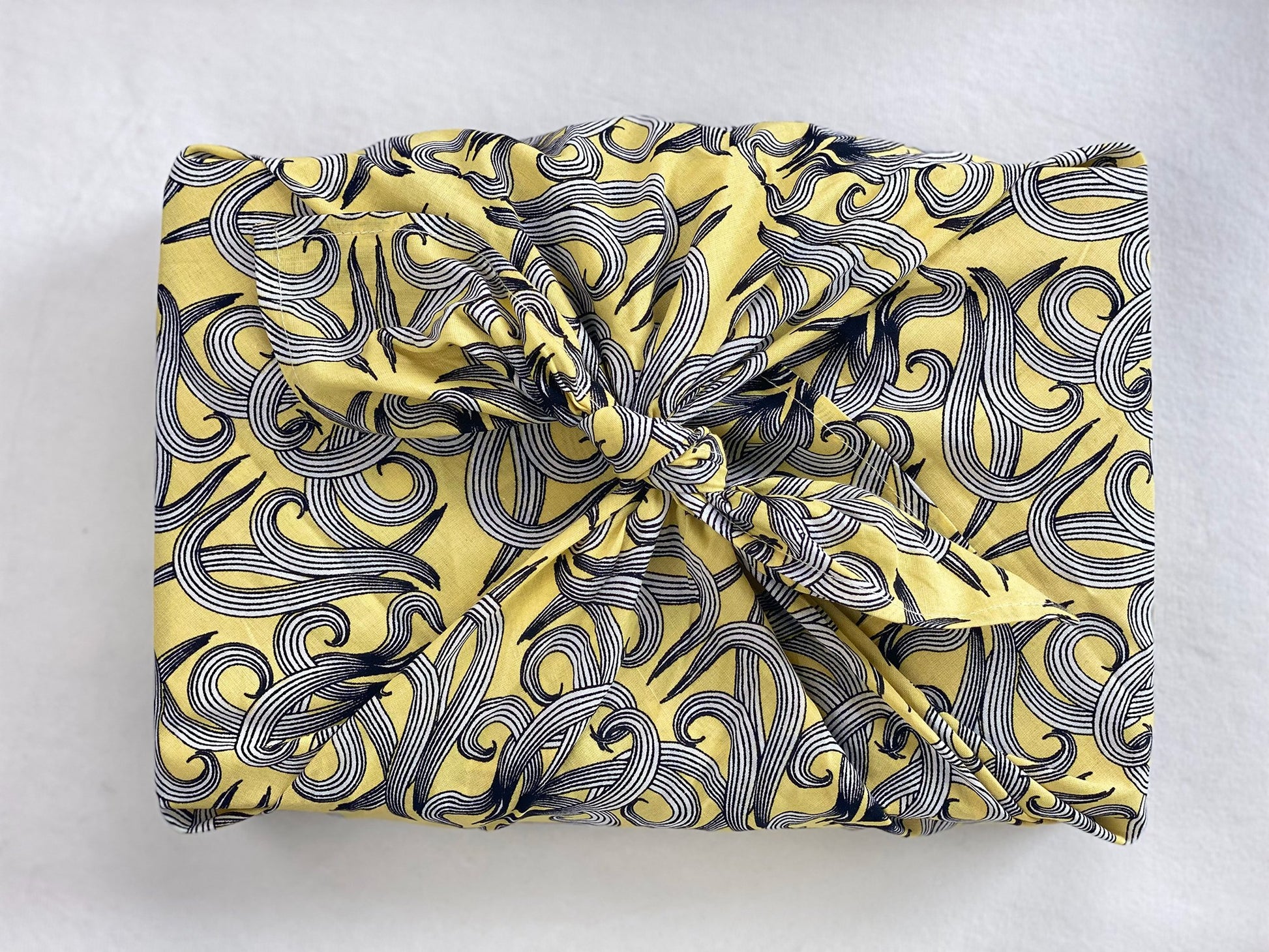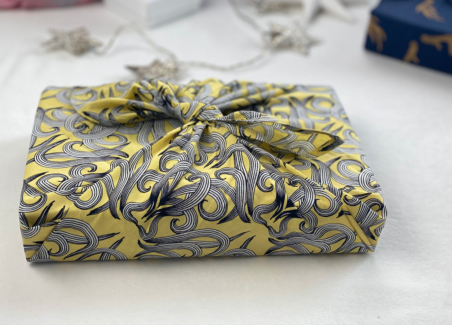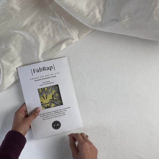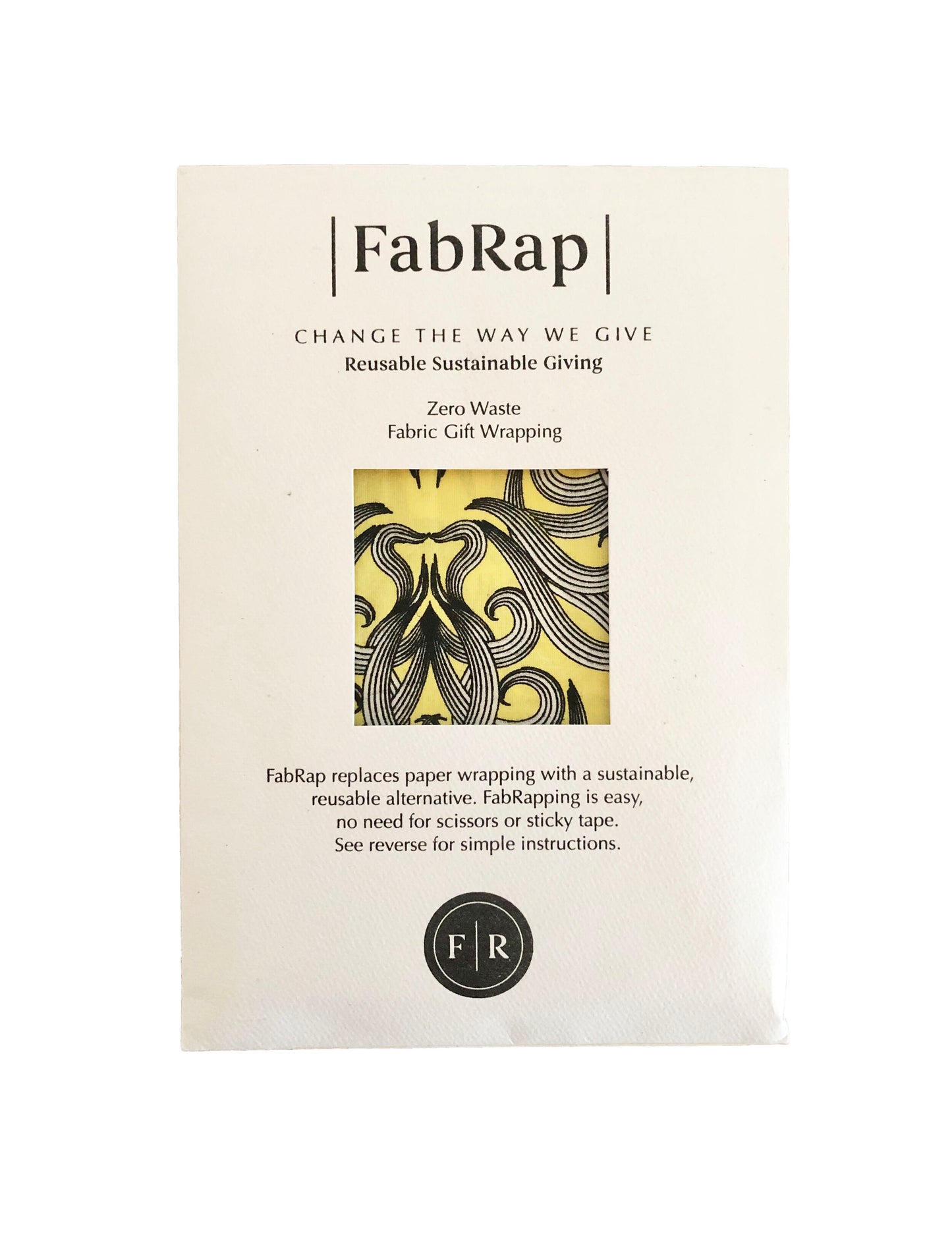 A FabRap exclusive design, this sunshine coloured, art-nouveau inspired print is great to brighten up any gift-giving occasion. All our FabRaps are packaged in a beautifully illustrated recycled paper envelope to help store your FabRap safely when not in use. Your purchase also includes handy note cards which help communicate to your recipient whether or not they should keep or give back the FabRap™ reusable gift wrap once the gift has been opened.